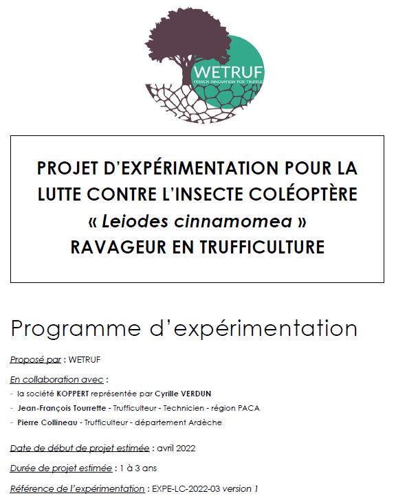 Nouveau projet « Expérimentation de lutte contre les ‘Leiodes cinnamomea’ – protocole WETRUF_KOPPERT ».