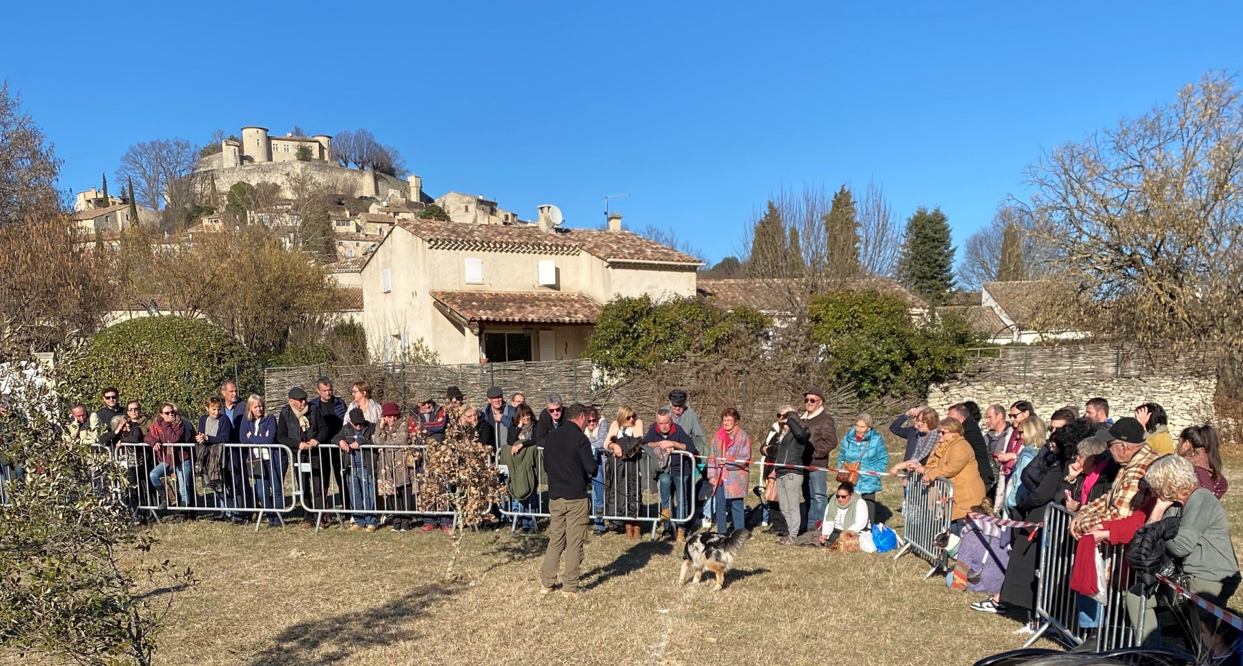 Très vite, le public s’est dirigé vers le proche Parc Jean Coulomb, pour la 1ère démonstration de cavage exécutée par différents trufficulteurs et leurs chiens.
