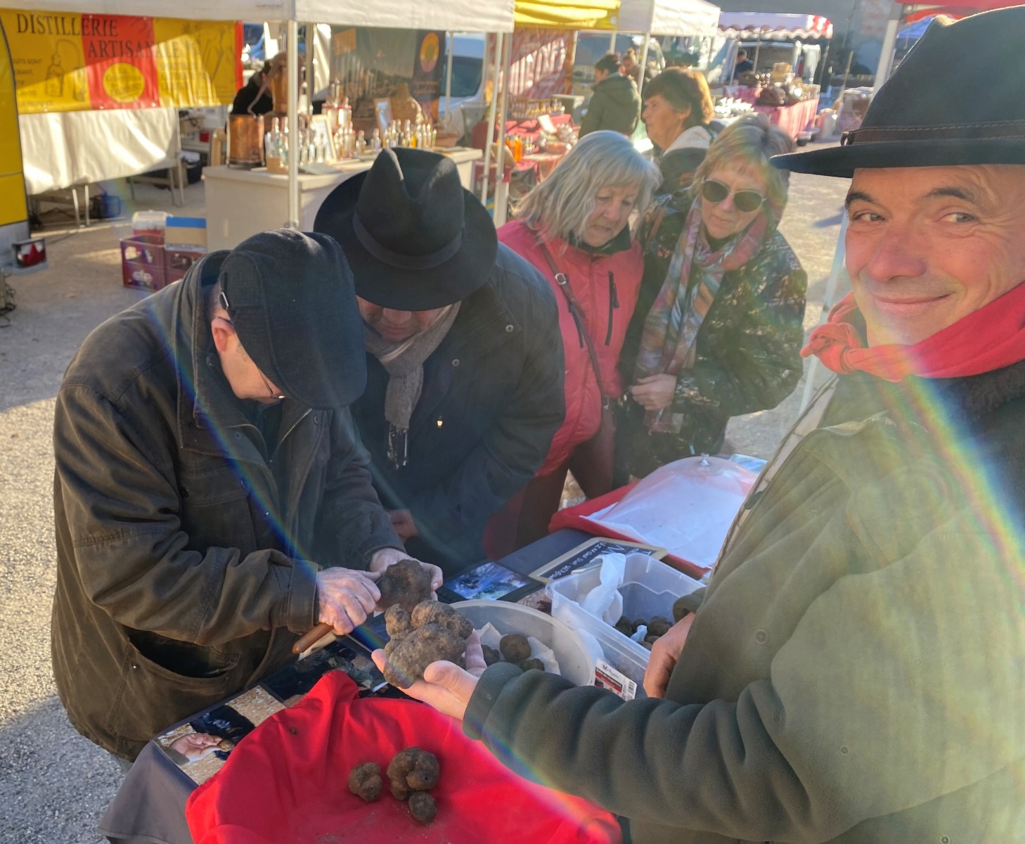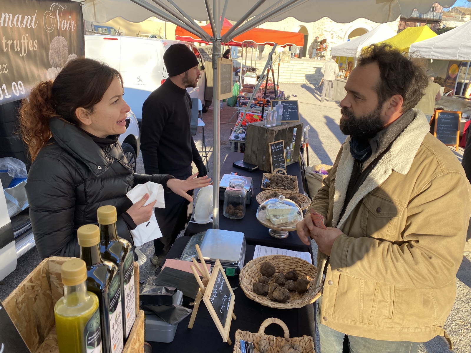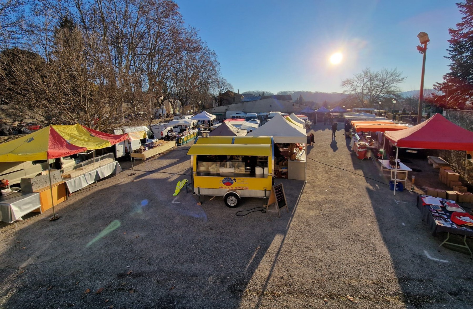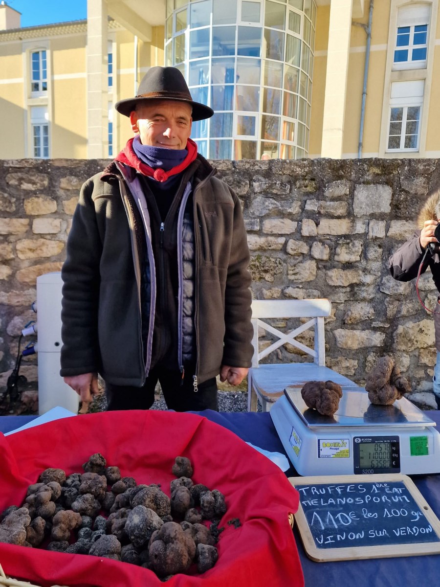 Le Dimanche 05 Février, dès 09h. le marché aux truffes et produits du terroir local s’est ouvert. Sur la place de nombreux stands présentaient leurs produits et aussi quelques truffes.