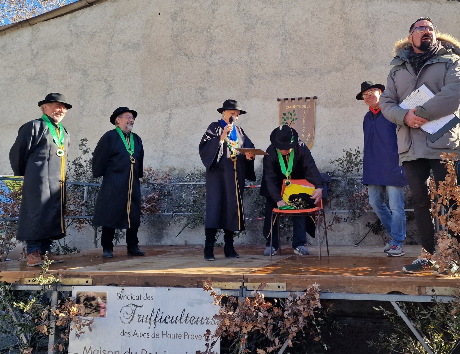 À 10h. a eu lieu l’inauguration de la « 32ème Fête de la Truffe des Alpes de Haute-Provence » en présence de nos élus ci-avant nommés.