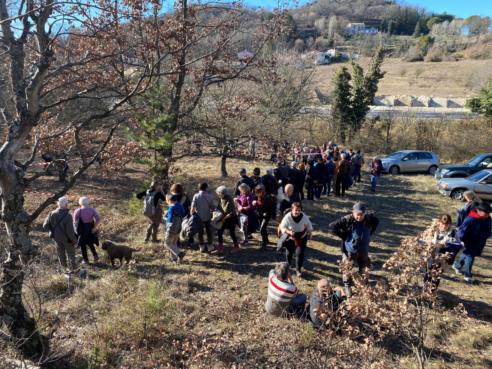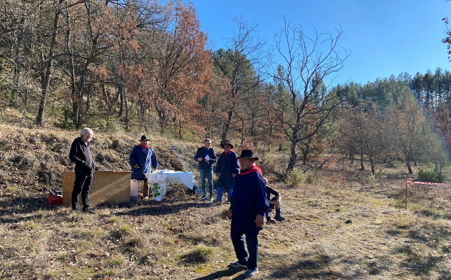 Le public présent, après une petite marche a ensuite rejoint un site Trufficole non loin du village, où l’attendait une délégation des membres de notre association pour leur servir le traditionnel vin chaud.